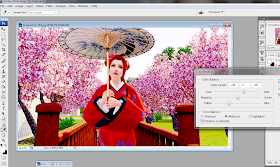 Hue/Saturation (again found in the same area) is another option to adjust color. A box pops up with three options: Hue, Saturation and Lightness. Hue is to choose the color. Saturation adjusts how light or dark the color is and lightness makes it brighter or duller. (Correct me if I am wrong, I'm not an art major so I may have gotten those terms mixed up or incorrect). For my photo, I changed the hue value to -1, the saturation value to 24 and lightness to 11. If you check the colorize box, then you can have a color that overlays the whole photo (in this case I did not have it checked).